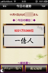 今日の運勢では、一億人の順位と総合運を読む事が出来ます。