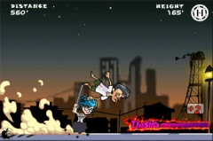 画面を指でなぞって方向を決めつつ、ぶっ飛ばすパワー量を決め、指を離すとM男子が飛んで行きます。