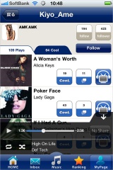 友達同士じゃなくても、他のユーザーが何を聴いているかも分かり、自分のiPhoneに入っている楽曲はもちろんのこと、自分のiPhoneに入っていない、友達しかもっていない楽曲もYouTubeを通して聴くことができます。