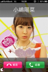 ささやきテレフォンでは、小嶋陽菜からの音声電話機能を試すことが出来ます。