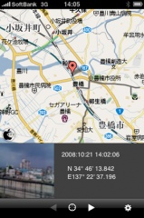 iPhone 3Gで予め位置情報を取得した写真か、GPS機能付きデジタルカメラで撮影した写真がiPhone/iPod touchの写真ライブラリに入っている必要があります。