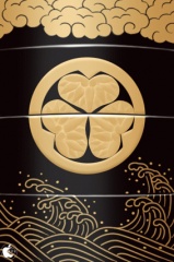 TBSの時代劇番組「水戸黄門」のクライマックスで登場するような音楽と共に、三つ葉葵の紋所が描かれた印籠が表示されます。