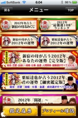 「2012年を占う「新宿の母おみくじ」「2012年“最強運108”ランキング」「2012年「開運」~あなたへのアドバイス」の3つが無料で利用出来ます。