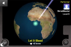 WORLDをタップすると、地球儀が表示され、ユーザーが演奏した曲を聞く事が出来ます。