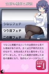 トップメニューから「性癖とは」をタップすると、性癖の種類と解説を読む事が出来ます。