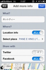 Shareをタップすると、現在地情報を投稿することが出来ます。