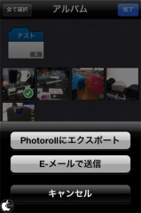 また、カメラロールに書き出ししたり、メール添付も行えます。