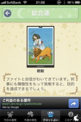 占いたい項目を選択すると、タロットカードが表示され解説を読む事が出来ます。