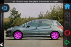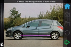 車を撮影したら、まず車のホイールベースの底の位置を、紫の線を動かして指定します。