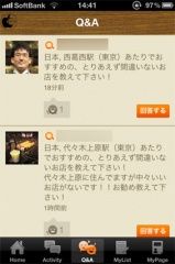 このアプリの特徴は、友達にお薦めのお店を質問することが出来る「Q&A」機能が搭載されていることです。