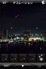 デコレーションでは、夜景にキラキラしたデコレーションをタップして追加することが出来ます。