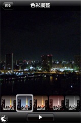 シャッターをタップすると、次に色彩調整画面が表示されます。