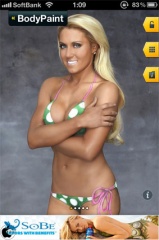 BODYPAINTをタップすると、モデルの体に水着風にペイントした写真を見る事が出来ます。