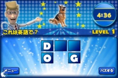 英単語の意味を表す絵が表示され、その下にアルファベットが表示され、直ぐに一文字ずつバラバラになります。