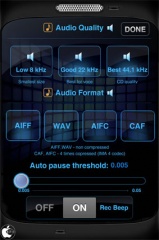 オーディオ設定では、8kHz、22kHz、44.1kHzの品質設定と、AIFF、WAV、AIFC、CAFのオーディオフォーマット選択が出来ます。