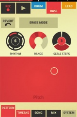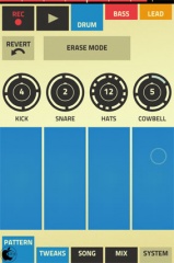 次にBASSタブをタップし、ドラムループを再生しながら、赤い部分を指でなぞり、リズムピッチを可変させます。