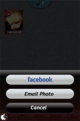 写真を選択してアクションボタンをタップすると、Facebook投稿やメール添付などを行う事が出来るようになっています。
