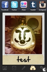 アップロードアイコンをタップすると、編集した写真をFacebook、Twitter、Flickr、Tumblr、Instagramに投稿することが出来ます。