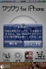 なお、このアプリはリリース記念期間限定無料配布されていますが、レビューを促すポップアップ表示に、今後も無料でアップデートを提供出来るよう、App Storeで5つ星評価をしてくれるよう表示がされます。