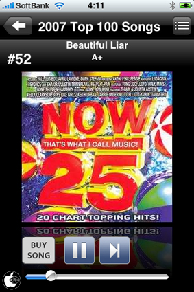 曲の再生時に、右上のリスト表示ボタンをタップすると、その年のヒットチャート表を見ることが出来ます。