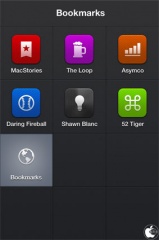 また、BookmarksやAppsをタップすると、そのボタンに登録された複数項目がグループとして表示されます。