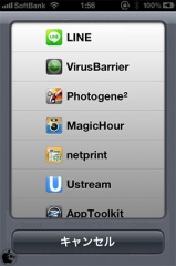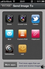 Sendボタンをタップすると、PhotoApplinkに対応したTiltShift Generator、miil、OneCamなどに写真を転送することが出来ます。