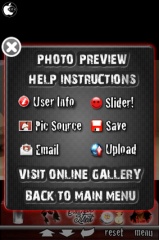 出来上がったら、右下のメニューをタップし、画像を保存するか、Be Like Lil' Wayneアプリ専用の画像ファイルサイトにアップしたり、メール添付したりすることが出来ます。