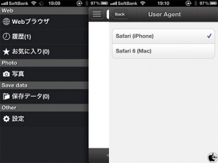 設定で、ユーザーエージェントでiPhoneレイアウトとMacレイアウトに切り替えることが出来ます。