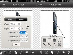 サイズ調整ボタンで、キャプチャーした画像のピクセルまたはパーセントサイズ調整も行うことが出来ます。