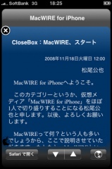 このMacWIRE for iPhoneコンテンツは、このアプリからしか閲覧出来ない記事も今後用意されるようなので、とても楽しみです。