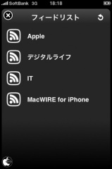 このアプリは、ITmediaの配信するRSSリーダーアプリで、ITmedia内の全記事が、フィードリスト「Apple」「デジタルライフ」「IT」というカテゴリーに振分けされて閲覧可能になっています。
