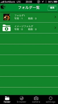 Folderタブでは、写真ライブラリー内にある写真や動画を取り込んで管理することが出来ます。