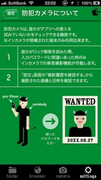 このアプリには防犯カメラ機能があり、誰かがアプリを起動してパスワードを入力し、パスワードが間違っているとFaceTimeカメラでの無音撮影が行われます。