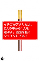 このアプリは、ポッキーをクジに見立てて引いて、イチゴポッキーを引いた人が当たりという宴会系アプリです。