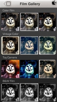 写真を選択したら、画面を上下左右にフリックすると、色々なフィルター効果やフレームが適用されたパターンが色々と表示されます。