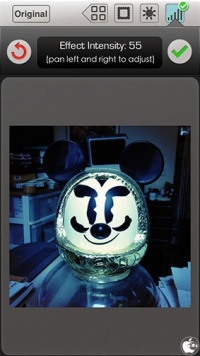 エフェクト調整ボタンをタップして画面を指で左右に動かすと、フィルター効果の強弱調整を行うことが出来ます。