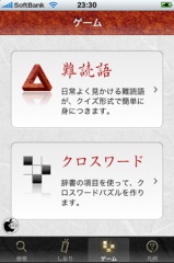 国語辞典だけでなく、8×8マスのクロスワードパズルと、難読語ゲームの2つが搭載されていて、頭の体操も出来るようになっています。