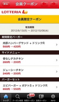 従来の携帯電話向け公式サイトを閉鎖し、スマートフォン向けの「ロッテリア公式アプリ」としてリリースするそうです。