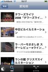 駅探が、iPhone/iPod touch用イルミネーションポイントアプリ「駅探イルミネーション特集2008」を、App Storeにて無料配布を開始していたので試してみました。
