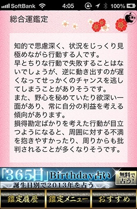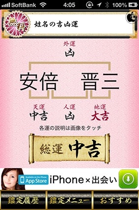 浅野八郎監修の無料姓名占いアプリ「開運!2013年度版姓名判断」を試す