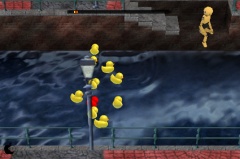 他のアイルより先に自分のアヒルを進めてゴールさせるのですが、進めるためには、アヒルの近くに石を投げて、、川の横にある大きな石を落としたりして、その波紋の影響で進めます。本体をチルトすることでも動かすことが出来ますが、そうすると、他のアヒルも一緒に進んでしまいます。