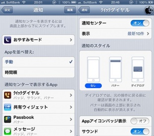 iOSの設定>通知で編集ボタンをタップし、クイックダイヤルを最上部に移動させます。
