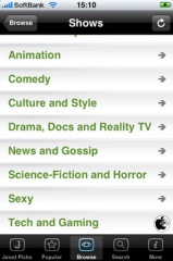 このiPhoneアプリ版は、Joostが提供しているタブのうち、Joost Picks、Popular、Serchの3つに絞り込まれています。