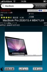 2008年12月04日(木) iPhone App Store#iPhone_3G#iPod_touch#価格.com#価格ポン! 価格.com検索アプリ「価格ポン!」を試す ※本サイトは、アフィリエイト広告および広告による収益を得て運営しています。購入により売上の一部が本サイトに還元されることがあります。 価格ポン! そらが、iPhone/iPod touch用価格.com検索アプリ「価格ポン!」を、App Storeにて無料配布を開始していたので試してみました。 アプリを起動して、探したい商品のキーワードを入力し検索します。 すると、キーワードにマッチした商品が、カバーフロー表示され、その下に、具体的な商品名が表示されます。 該当する商品と思われる画像をタップすると、最低価格や、クチコミ件数、満足度などが表示されます。 下に表示される、価格比較、レビュー、クチコミのボタンをタップすると、Safariを開く事無く、アプリ内で価格.comの該当ページが表示されます。 ↓の評価ボタンを押してランキングをチェック!