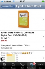 これの凄いところは、表示された商品情報ページには、パッケージ写真が無いのに、Eye-Fiカードを表示してくれるという点です。