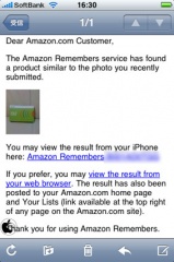 画像解析が終了し、該当する商品が見つかるとメールが届きます。