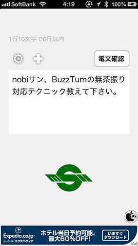 アプリを起動して、メッセージ入力エリアに、1行10文字で6行以内の文章を入力します。