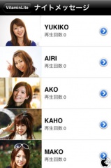 アプリを起動すると、ビタミンガールと名づけられた5人の女性による、モーニング、イブニング、ナイトのカテゴリに分けられた動画によるメッセージが再生されます。