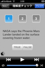 従来の英語リスニング学習書では、本とCDの2つを用意して学習しなければなりませんでしたが、このアプリは、それが一つにまとまっているのが特徴のようです。