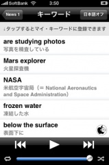 基本は、キーワード・リスニングをタップして、ニュースを聞きながら、ポイントとなる単語をチェックすることができ、日本語訳のオン/オフも行なう事ができます。